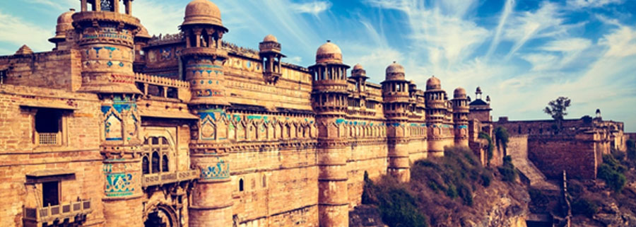 Gwalior Fort (Hindi: ग्वालियर क़िला Gwalior Qila) is a hill fort near Gwalior, Madhya Pradesh, central India. The fort has existed at least since the 10th century, and the inscriptions and monuments found within what is now the fort campus indicate that it may have existed as early as the beginning of the 6th century. The fort has been controlled by a number of different rulers in its history.